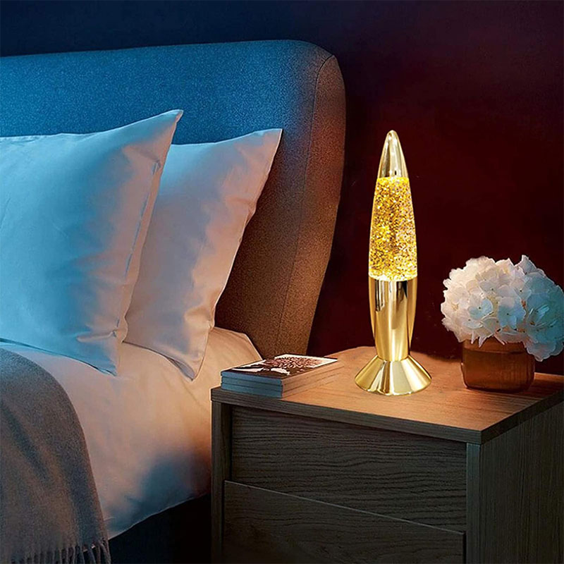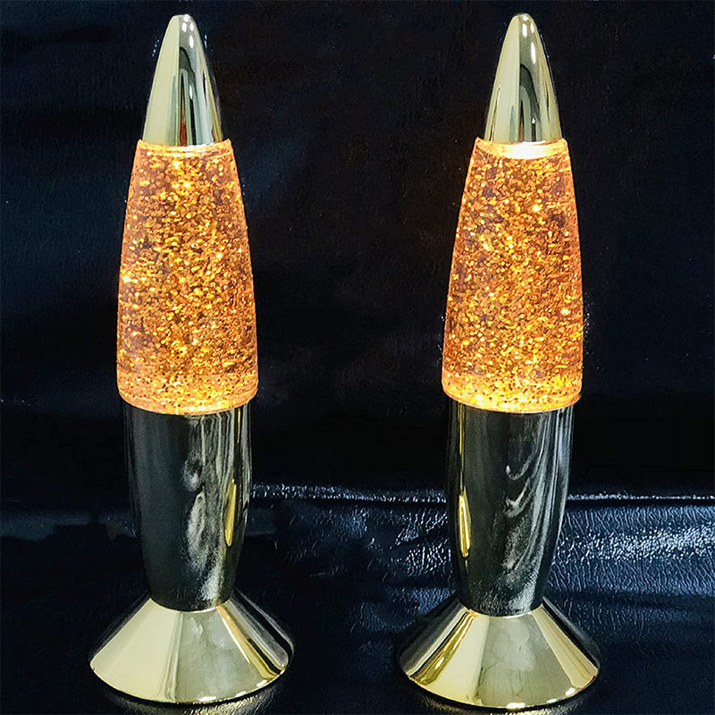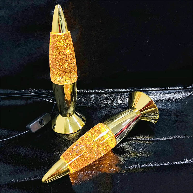 Lampu glitter 7 inci duwe cairan ing njero botol. Cairan kasebut ora tetep sawise dipanasake. ana macem-macem inch lan macem-macem botol gaya warna.