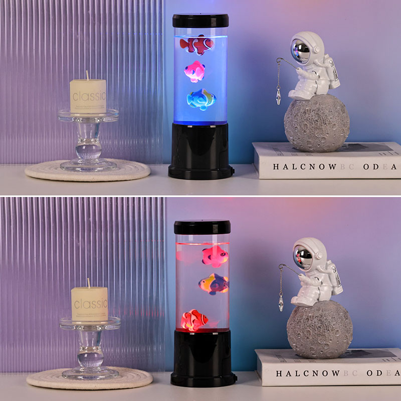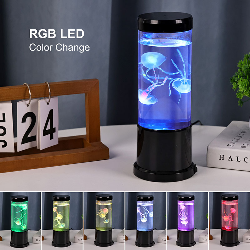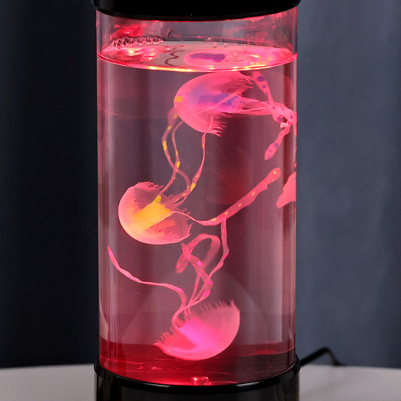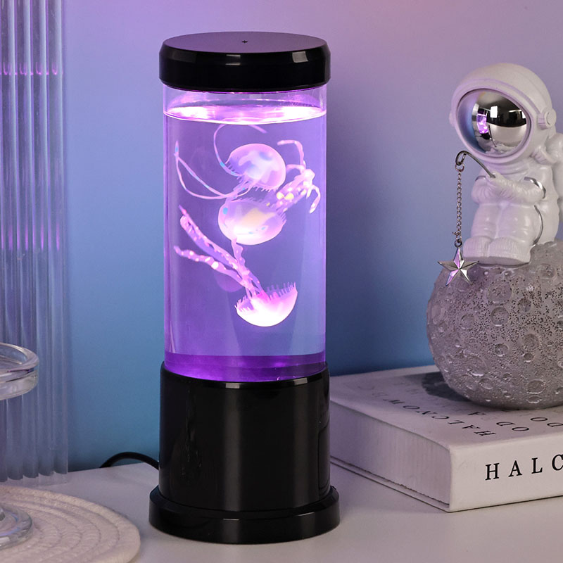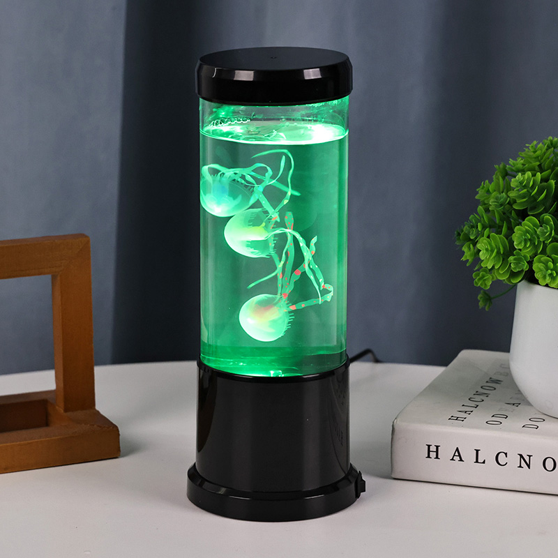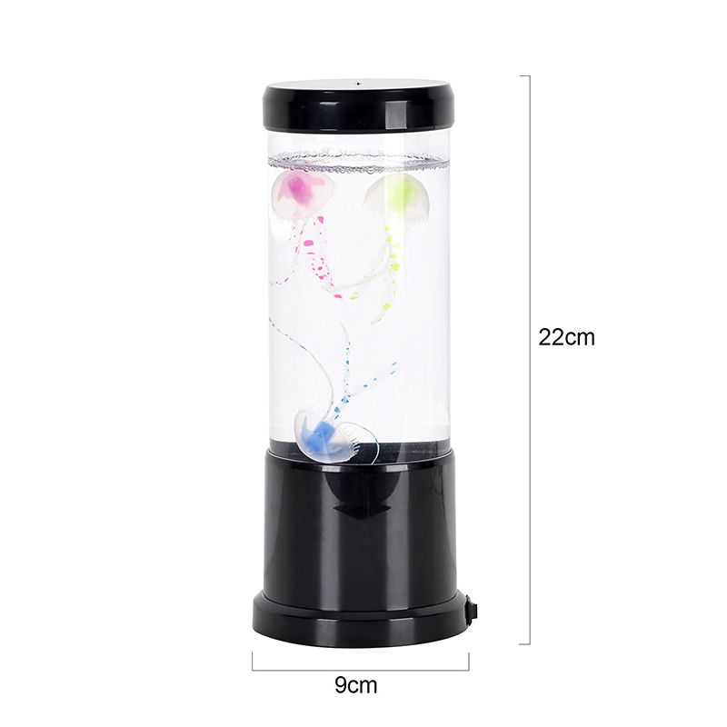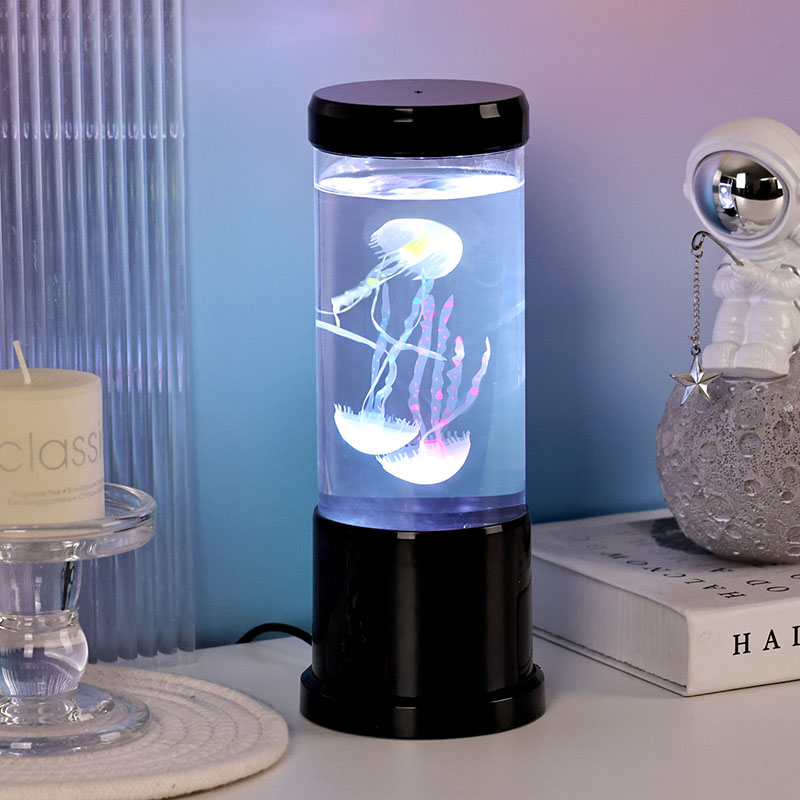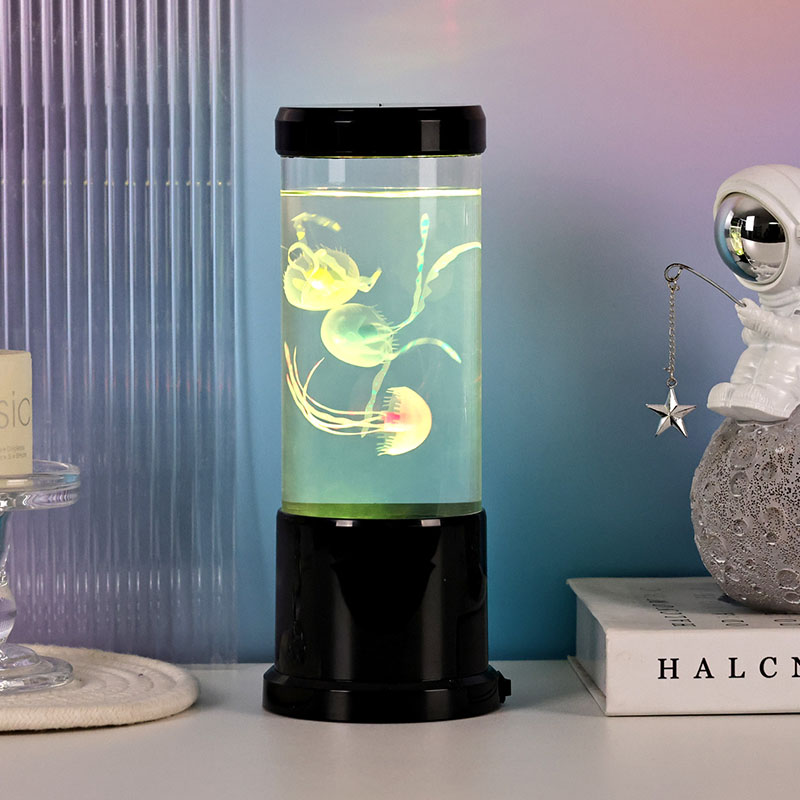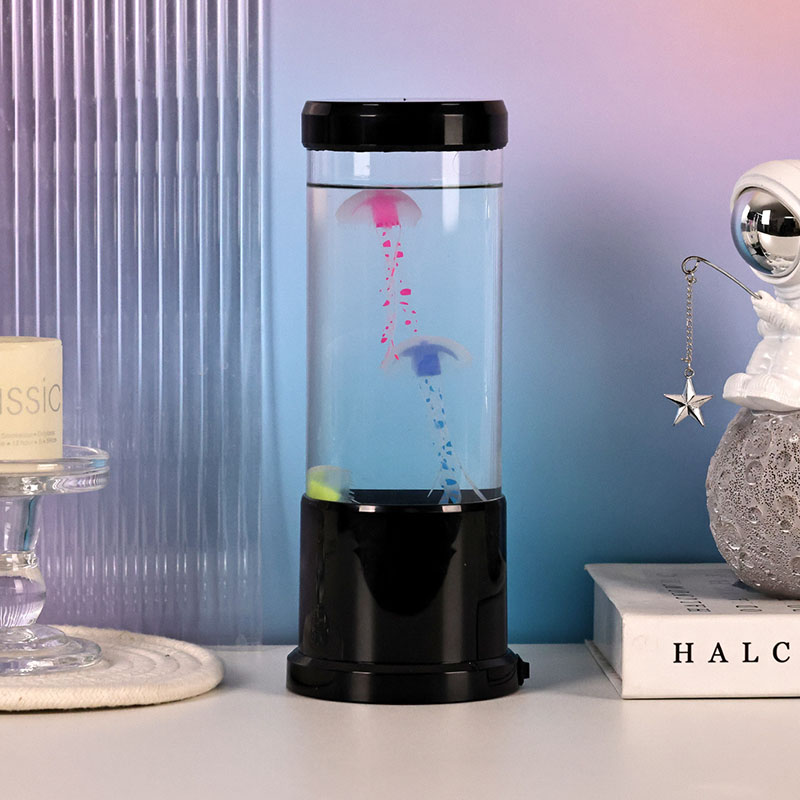 lamp fitur lifelike Black shade ubur-ubur lampgently ngambang ing tank silinder bening, nggawe swasana jero banyu gak oleh pisan sing ngowahi sembarang kamar menyang serene oceanic mundur.