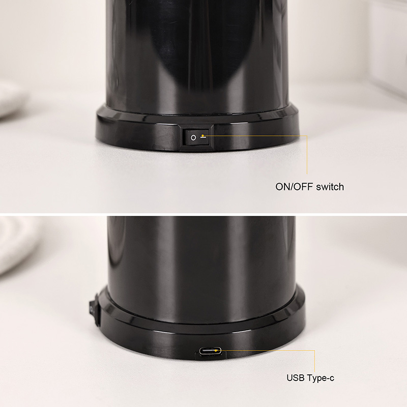 Digawe kanthi eksterior ireng sing ramping, lampu kasebut nduweni tampilan minimalis nanging elegan, dadi aksen sing cocog kanggo kamar turu, ruang tamu, kantor, utawa malah minangka hadiah sing unik. Dasar lan tutup ireng sing nggilap ora mung menehi kontras sing apik karo warna sing sregep ing njero nanging uga njamin daya tahan