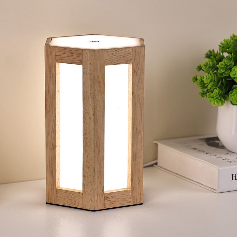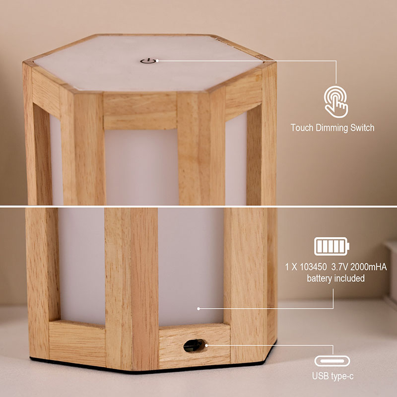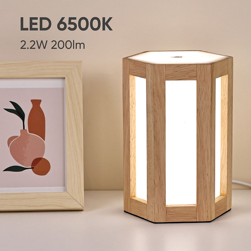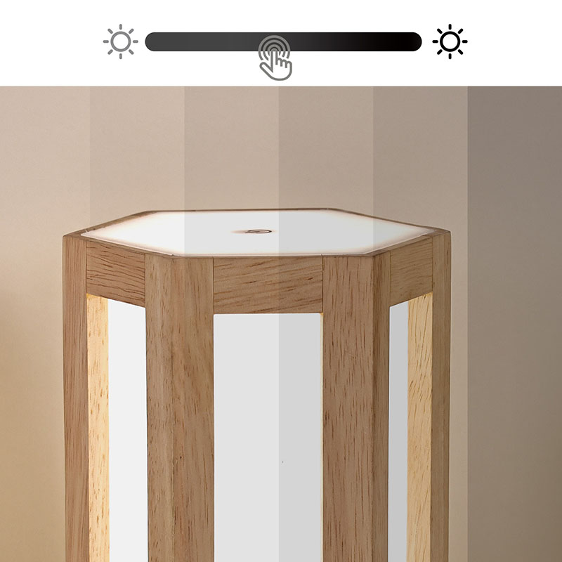 Lampu wengi kayu lan plastik sing bisa dimmable iki ora mung alat cahya praktis, nanging uga dekorasi sing apik banget. Lampu meja sing dipimpin tanpa kabel kanthi baterei bisa diselehake ing meja bedside kanggo ngancani sampeyan