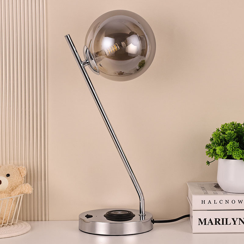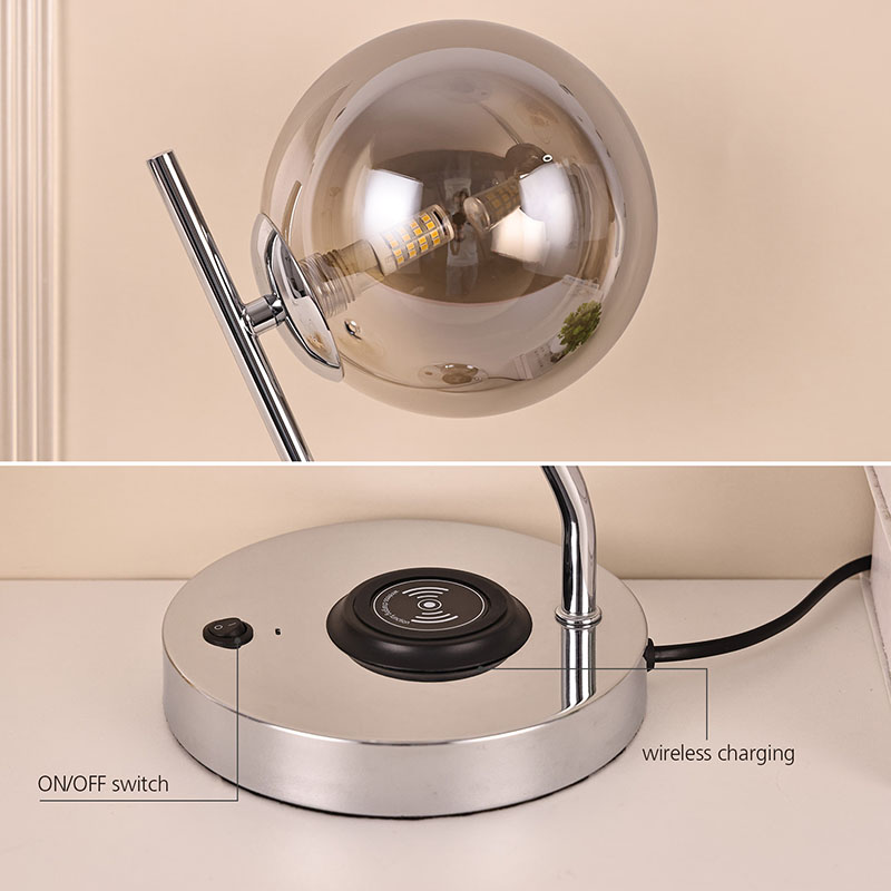 Lampu meja werni kaca peteng kanthi pangisi daya nirkabel digawe ing kaca ande basa logam. Tutup kaca ora mung menehi lampu tekstur transparan lan murni, nanging uga nyebarake cahya kanthi efektif, nggawe cahya luwih alus lan seragam. Dasar logam wis dipoles lan dirawat kanthi apik, kanthi permukaan sing alus lan alus, nyaman kanggo disentuh, lan ngetokake atmosfer sing mulya lan elegan. Apa diselehake ing kamar turu, ruang tamu utawa sinau, lampu meja iki bisa nyampur karo lingkungan sekitar, nambah suasana modern lan artistik.