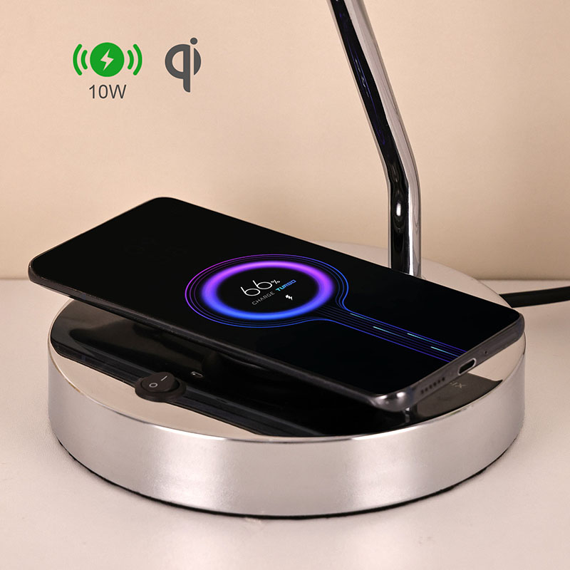 Lampu meja duwe pangisi daya nirkabel ing dhasar
