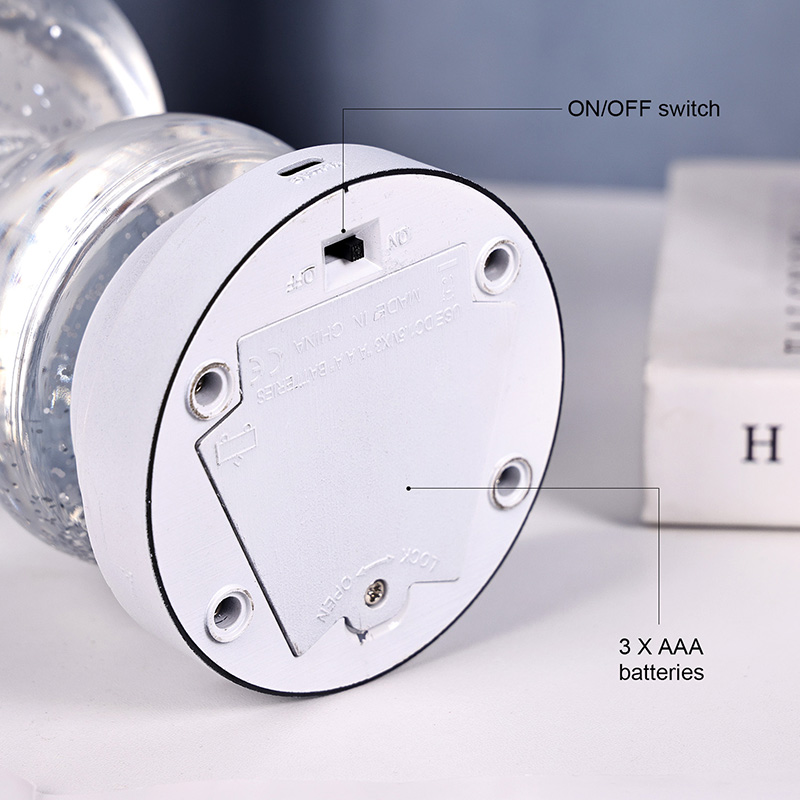 Lampu Malam Ubur-ubur Enchanting nampilake desain sing nggumunake sing niru wujud ubur-ubur sing anggun. Badan plastik sing tembus ngemot macem-macem lampu LED warna-warni lan partikel glitter sing ngambang, nggawe tampilan sing dinamis lan terus-terusan. Bentuk ubur-ubur sing alus lan mili uga elegan lan nyenengake, nyebabake gerakan sing lembut saka makhluk laut sing nggumunake iki.