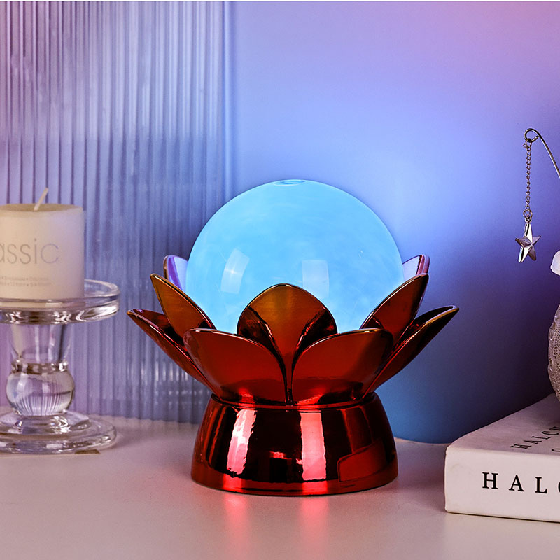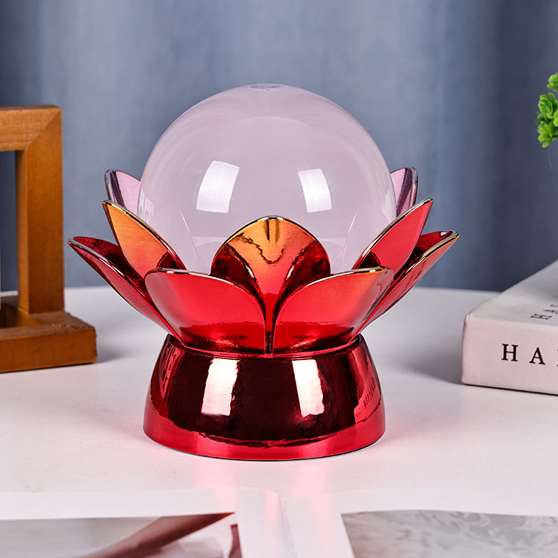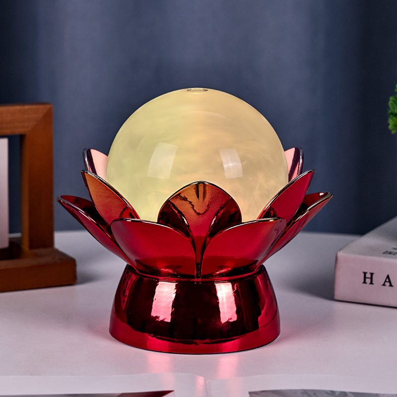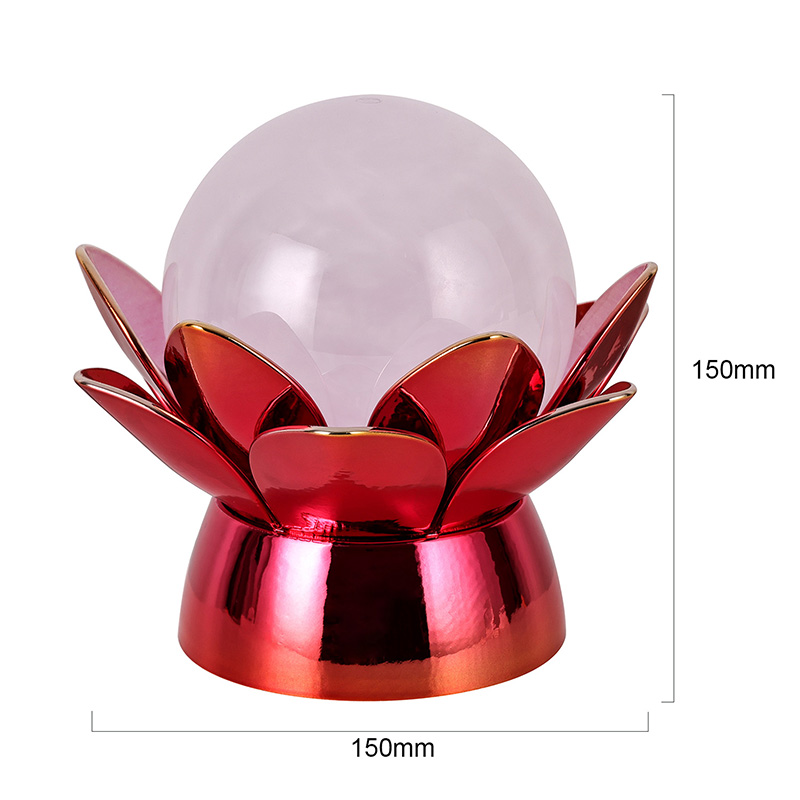 Digawe saka bahan bermutu tinggi, dhasar digawe saka logam sing dipoles kanthi finish abang-emas sing apik banget sing nggambarake cahya kanthi apik, nambah ambane lan sugih ing tampilan. Desain lotus ora mung dadi titik fokus estetis nanging uga nduweni makna simbolis sing didhasarake ing tradhisi Timur-makili pencerahan, ketahanan, lan harmoni. Lumahing reflektif nambah efek visual, nggawe lampu sumunar sanajan ing lingkungan sing kurang cahya.