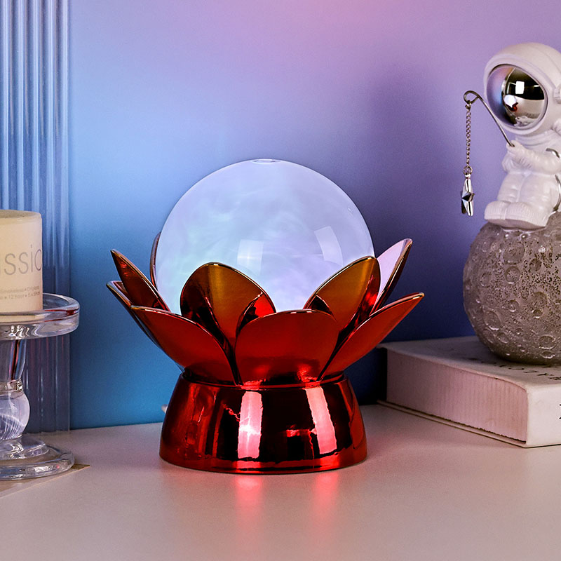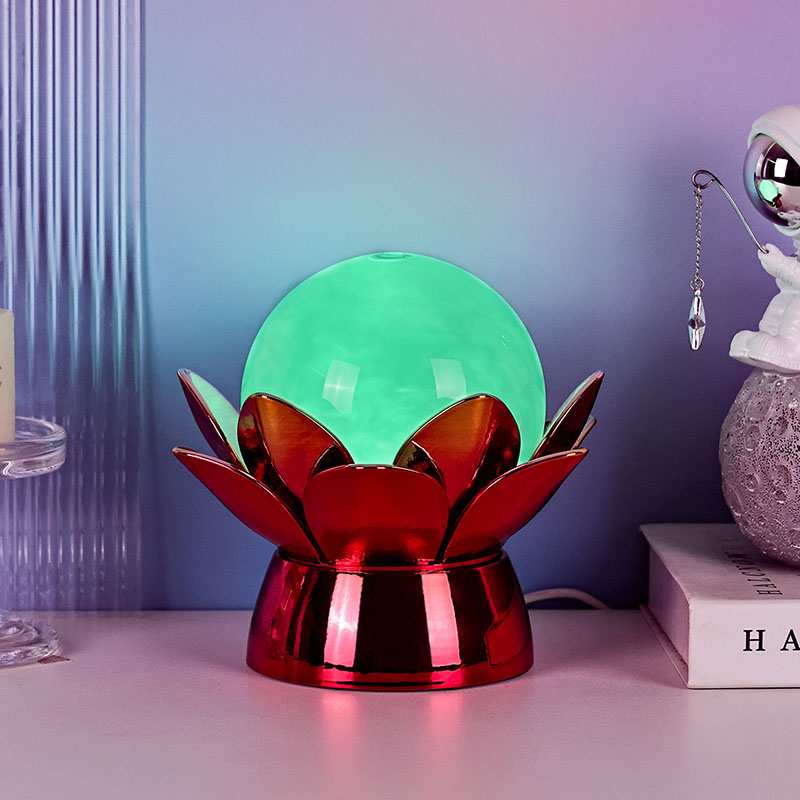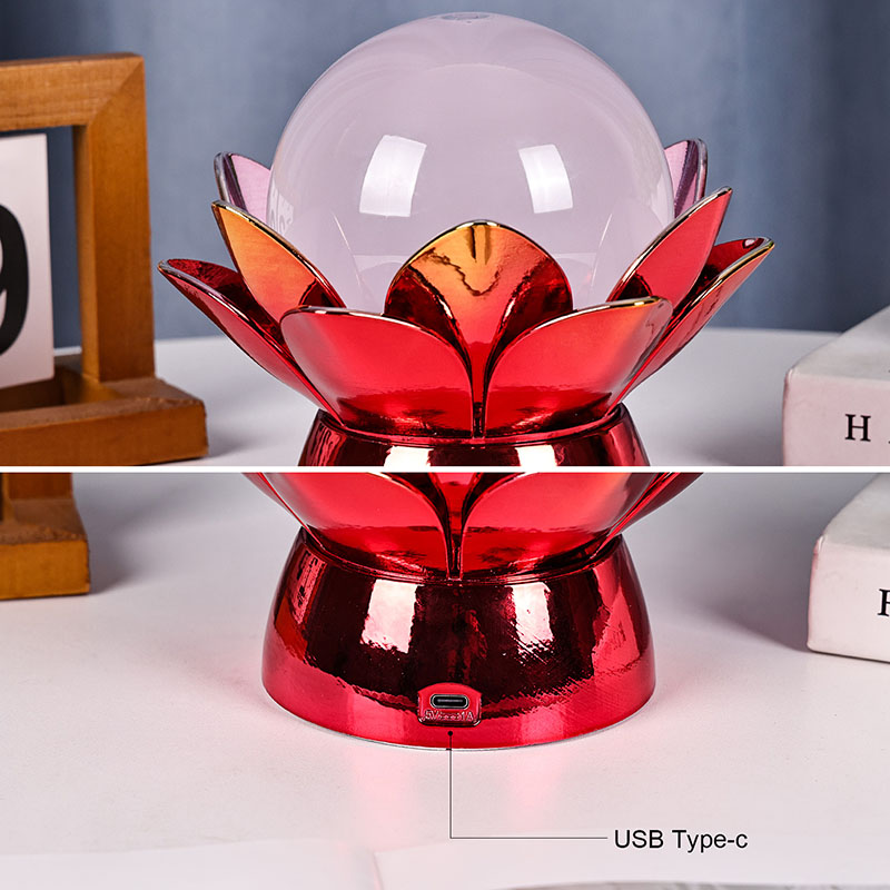 Lotus Cloud Globe Night Light sing nggumunake - gabungan desain inspirasi alam, suasana sing nyenengake, lan teknologi modern. Lampu hiasan sing elegan iki nduwe globe kaca tembus sing diisi cairan khusus sing nyimulasi awan sing mabur, nggawe efek sing tenang lan ethereal nalika muter lan mili. Diilhami dening kembang teratai suci, cahya wengi iki dumunung ing dhasar metalik sing digawe kanthi apik kaya kelopak teratai sing mekar, nglambangake kemurnian, perdamaian, lan kebangkitan spiritual.