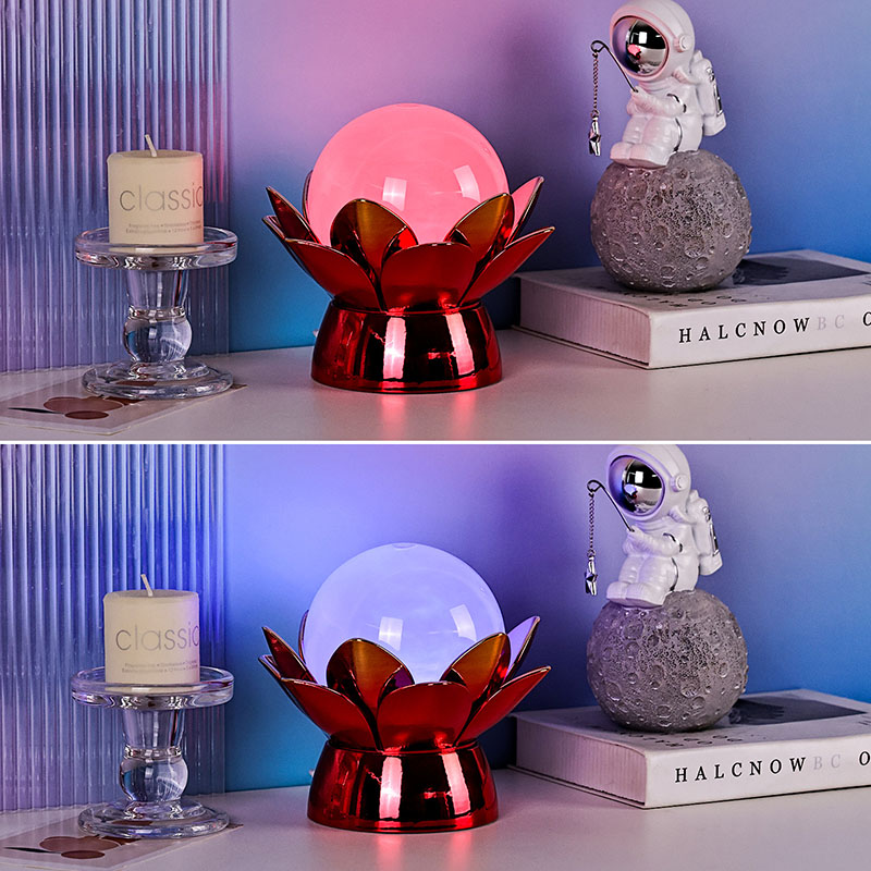 Ing ndonya, lampu LED majeng nawakake katerangan multi-werna, ngidini pangguna ngatur swasana ati kanthi warna alus kayata putih anget, jambon lembut, biru sing tenang, lan kuning emas. Fitur ganti warna bisa dikontrol kanthi manual utawa disetel kanggo siklus kanthi otomatis, nyedhiyakake tampilan dinamis lan menawan sing berkembang saka wektu. Lampu sekitar iki cocog kanggo kamar turu, ruang tamu, ruang yoga, utawa minangka hadiah sing apik kanggo wong sing ditresnani sing ngormati kaendahan lan ketenangan.