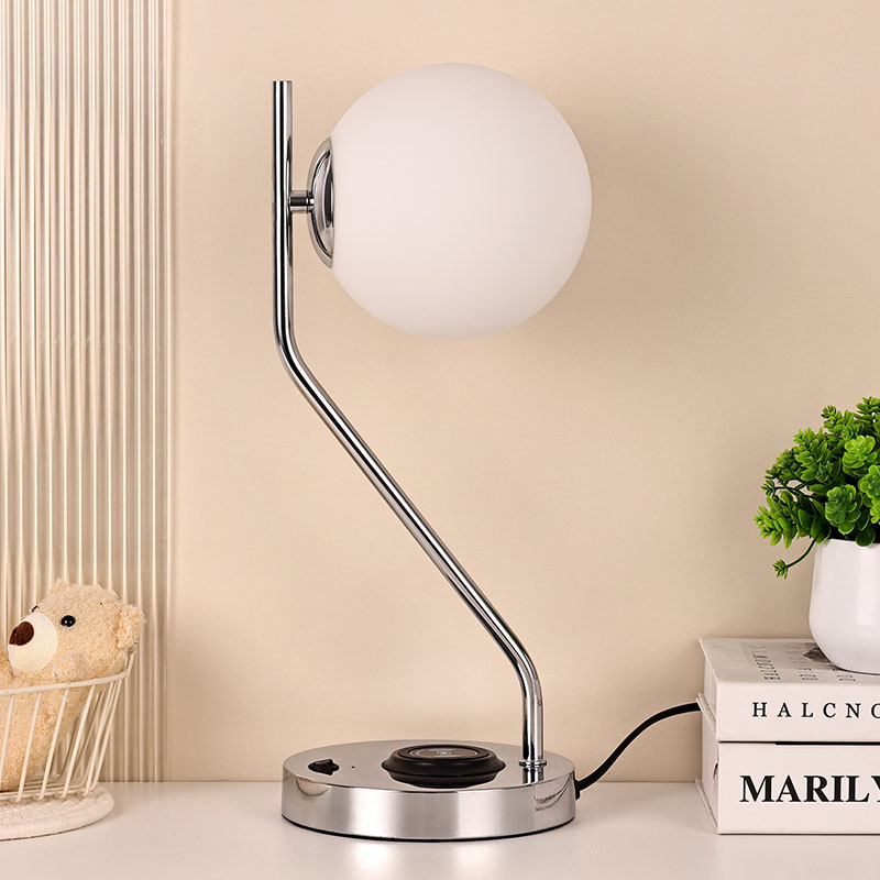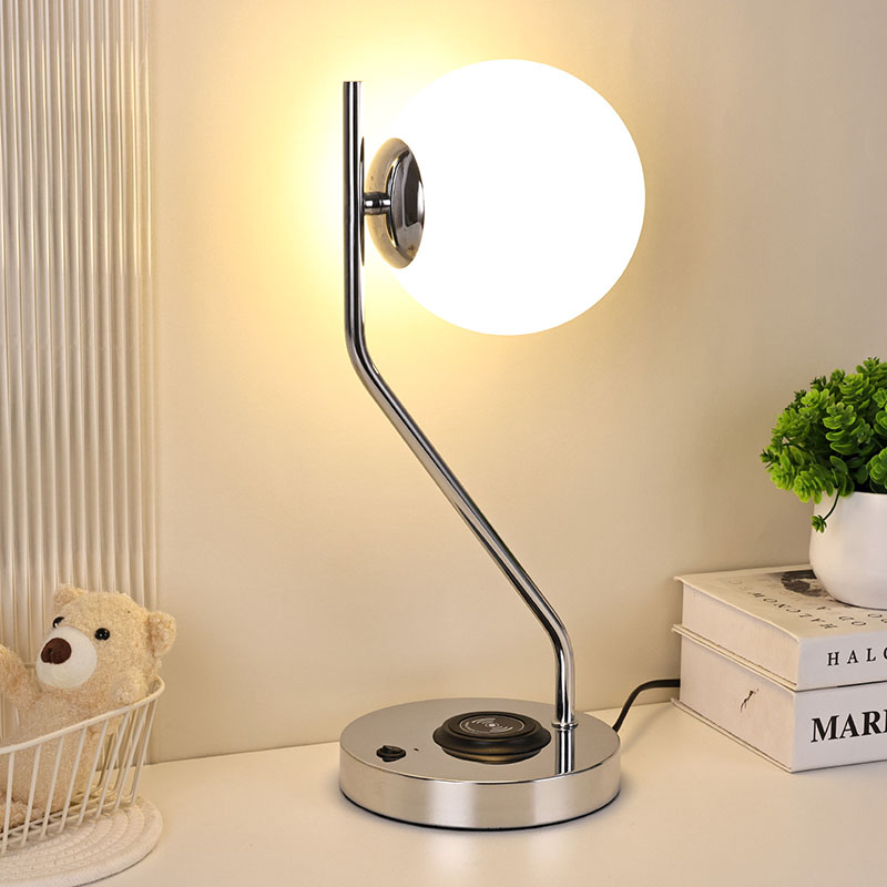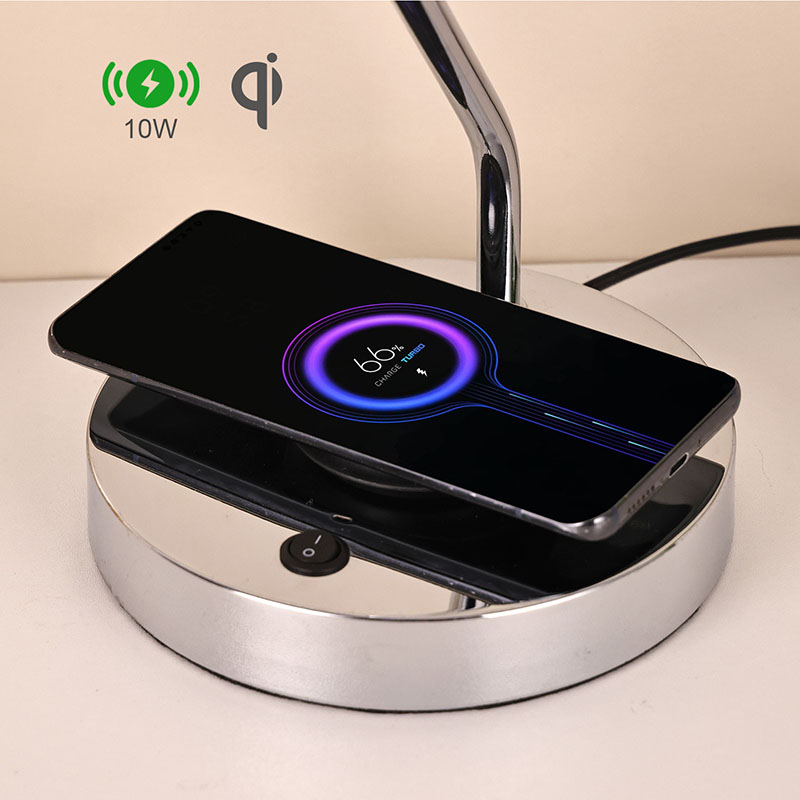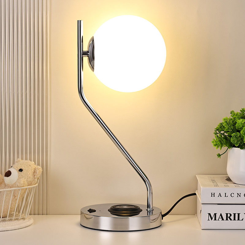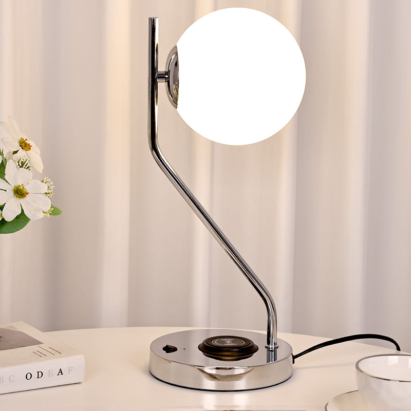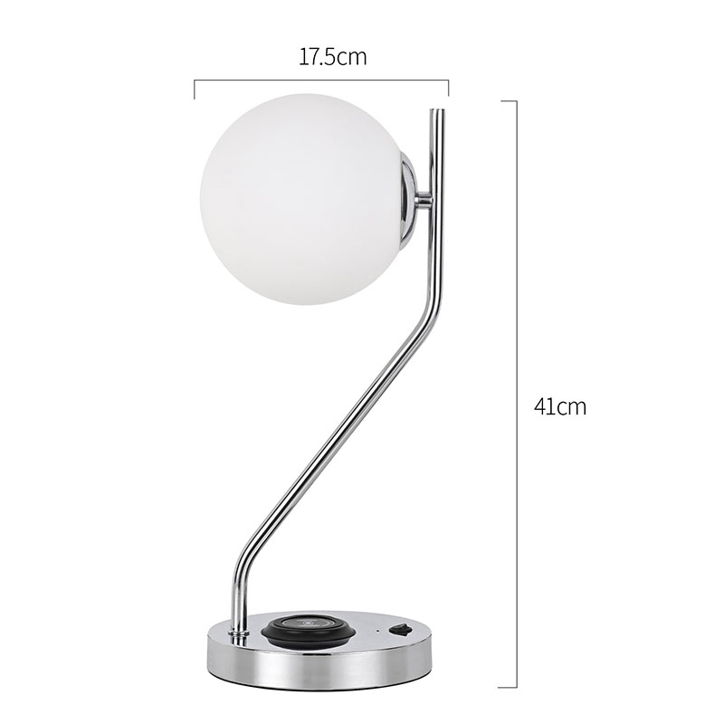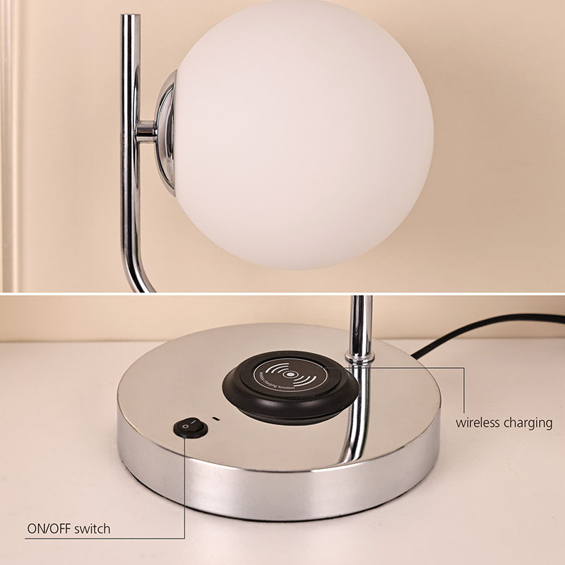 Lampu meja teduh kaca kanthi pangisi daya nirkabel uga dilengkapi basis pangisi daya ponsel nirkabel logam. Cukup selehake telpon sing bisa diisi daya nirkabel kanthi alon-alon ing dhasar kanggo ngisi daya kanthi cepet, tanpa perlu repot.