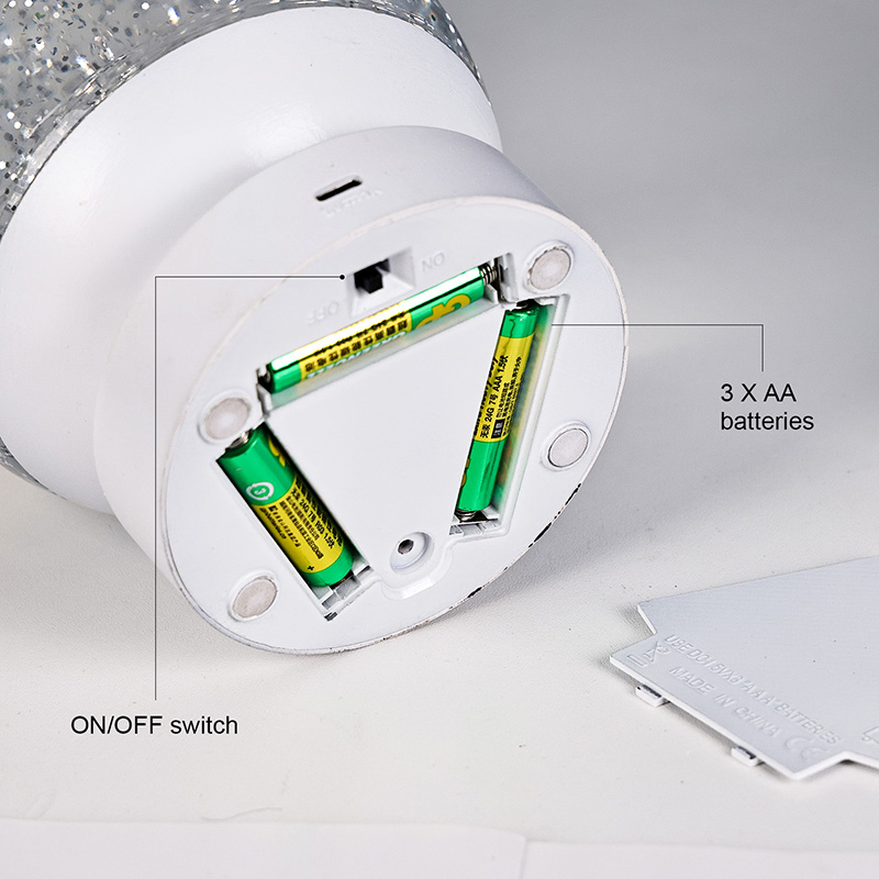 Led RGB Glitter Decor Lamp digawe saka bahan akrilik bermutu tinggi, nampilake bola tembus kanthi transmisi cahya sing apik banget. Dasar digawe saka plastik ABS sing ramah lingkungan, njamin stabilitas, daya tahan, lan safety tanpa bahan beracun. Iki digunakake ing telung baterei AAA sing dibangun (baterei sing didol kanthi kapisah), ngilangi kabutuhan stopkontak lan menehi panggunaan sing trep. Sampurna kanggo diselehake ing amben, meja, utawa ing pojok dolanan bocah. Kanthi saklar tutul sing prasaja, lampu bisa gampang diuripake utawa dipateni, dadi pangguna-loropaken sanajan bocah bisa mlaku kanthi mandiri.