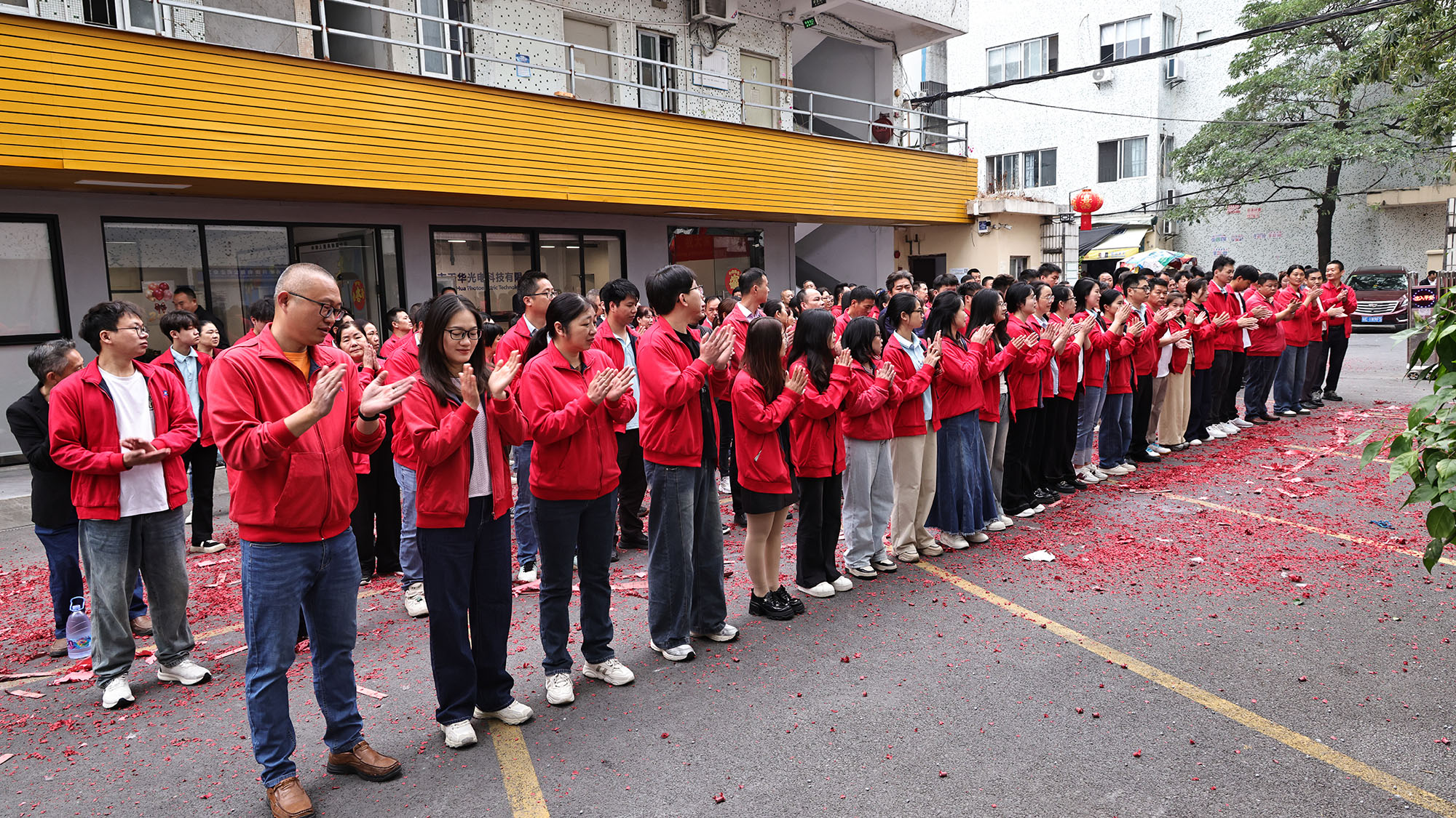 Ing wayah esuk, diiringi swara mercon sing renyah lan nyenengake, upacara kick-off resmi diwiwiti. Gemuruh mercon sing mbudheg ora mung ngilangake hawa adhem ing mangsa adhem nanging uga dadi pralambang yen perusahaan bakal maju lan makmur ing taun anyar. Pecahan kertas abang sing nari ing langit kaya kembang pertanda sing apik, mbukak dalan gedhe kanggo masa depan sing apik, sing nuduhake Tianhua Optoelektronik mesthi bakal entuk kinerja sing mundhak lan berkembang ing taun 2026.