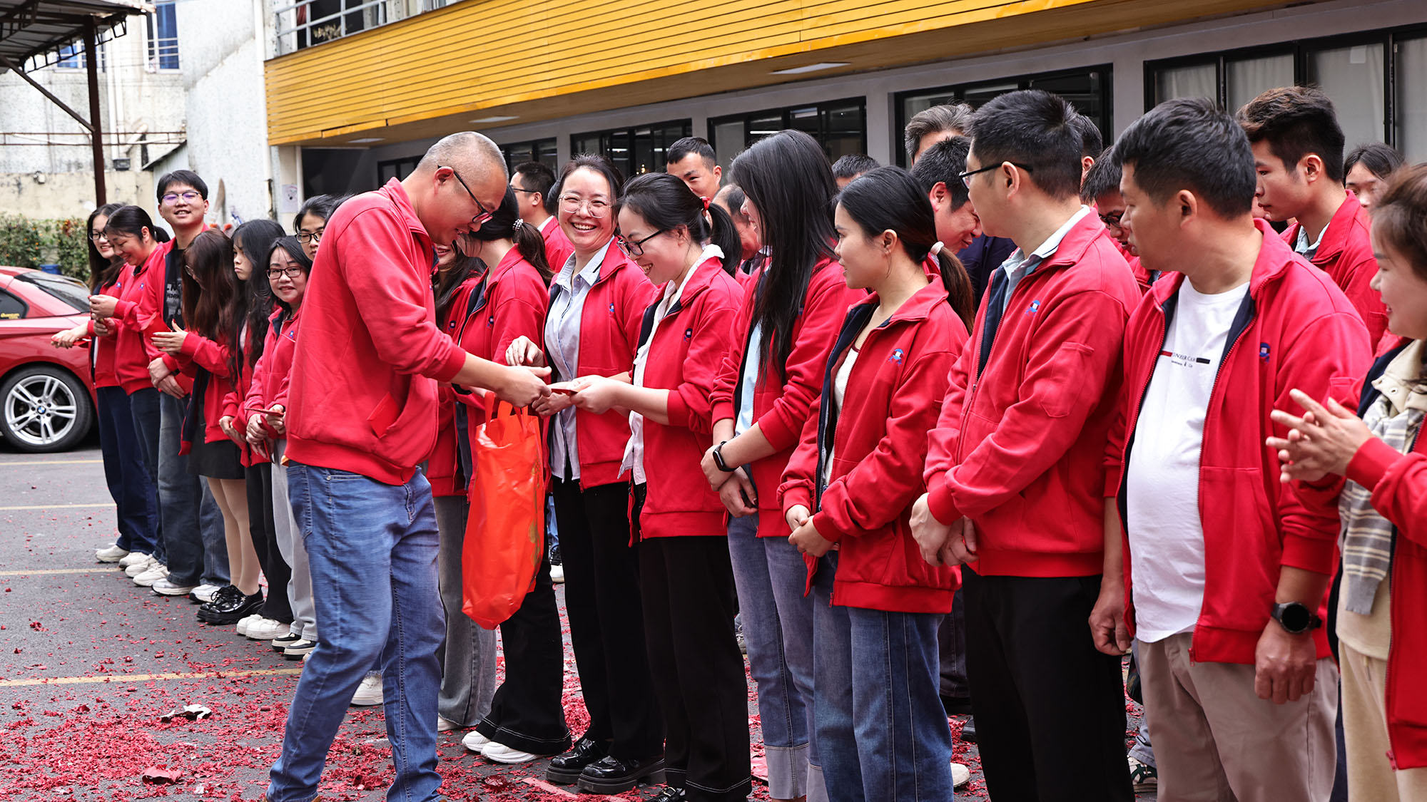 Sabanjure, segmen sing nyenengake nyebarake "Paket Merah Kick-off" nyurung swasana ing situs menyang klimaks. Manajemen perusahaan kanthi pribadi menehi amplop abang (Li Shi) sing apik kanggo saben karyawan. Paket abang sing abot iki ora mung nggawa perawatan lan berkah perusahaan kanggo staf, nanging uga pangarep-arep sing apik kanggo kabeh wong sing lancar lan urip sing seneng ing taun anyar. Karyawan sing nampa paket abang padha sumringah karo eseman seneng, ijol-ijolan salam "A Prosperous Start." Tawa lan kabungahan ngebaki hawa, intertwining rasa kuwat saka Taun Anyar karo anget manungsa, warming atine saben wong.