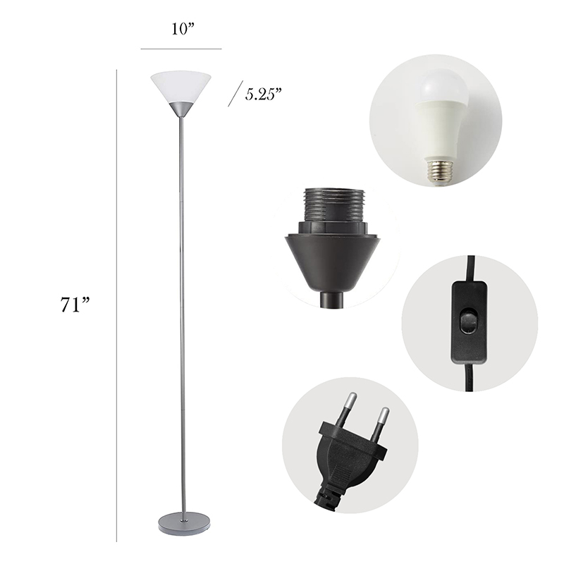 Lampu lantai bisa dilengkapi bolam E27 / E26, lan produk kasebut bisa ngliwati tes standar Eropa lan Amerika.