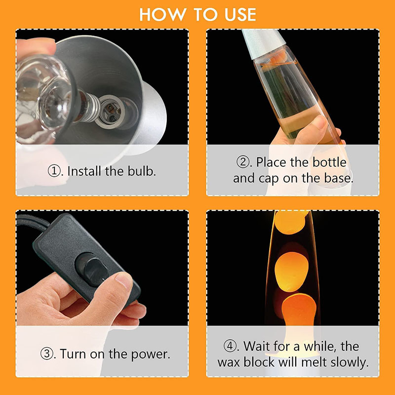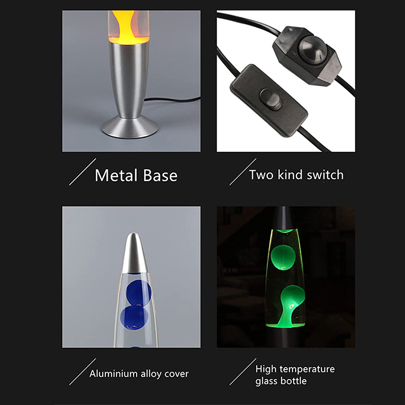 Dasar perak & Botol sing jelas, macem-macem warna Lilin & Cairan |
