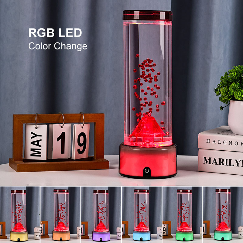 Dirancang kanthi ati-ati kanthi rinci, lampu LED sing bentuke gunung geni iki nduweni ruang cairan silinder sing diisi cairan bening lan partikel abang ngambang sing nyimulake letusan gunung geni nalika diaktifake. Dasar lampu sumunar kanthi lampu RGB sing sregep, ganti warna, dene struktur gunung geni tengah berdenyut kanthi cahya murub, niru letusan sing nyata. Ing wektu sing padha, dekorasi kaya ubur-ubur alus ngambang kanthi apik ing kolom cairan, nambah suasana jero banyu sing nyata. Bebarengan, unsur-unsur kasebut nggawe tontonan visual sing nggumunake sing nggabungake kekuwatan alam kanthi keanggunan desain modern. Desain & Daya Tarik Estetika Lampu Volcano sing Ganti Warna RGB dhuwuré kira-kira 12 inci, saéngga cocog kanggo diselehake ing meja, meja, rak, utawa minangka hiasan sing nyenengake, utawa malah ing ruang tamu, kamar turu. Siluet modern sing ramping dilengkapi tabung silinder transparan sing digawe saka plastik sing tahan pecah, njamin daya tahan lan safety. Tutup ndhuwur disegel kanthi aman kanggo nyegah bocor, dene dhasar digawe saka plastik sing wis rampung matte kanthi panel kontrol sing dibangun.