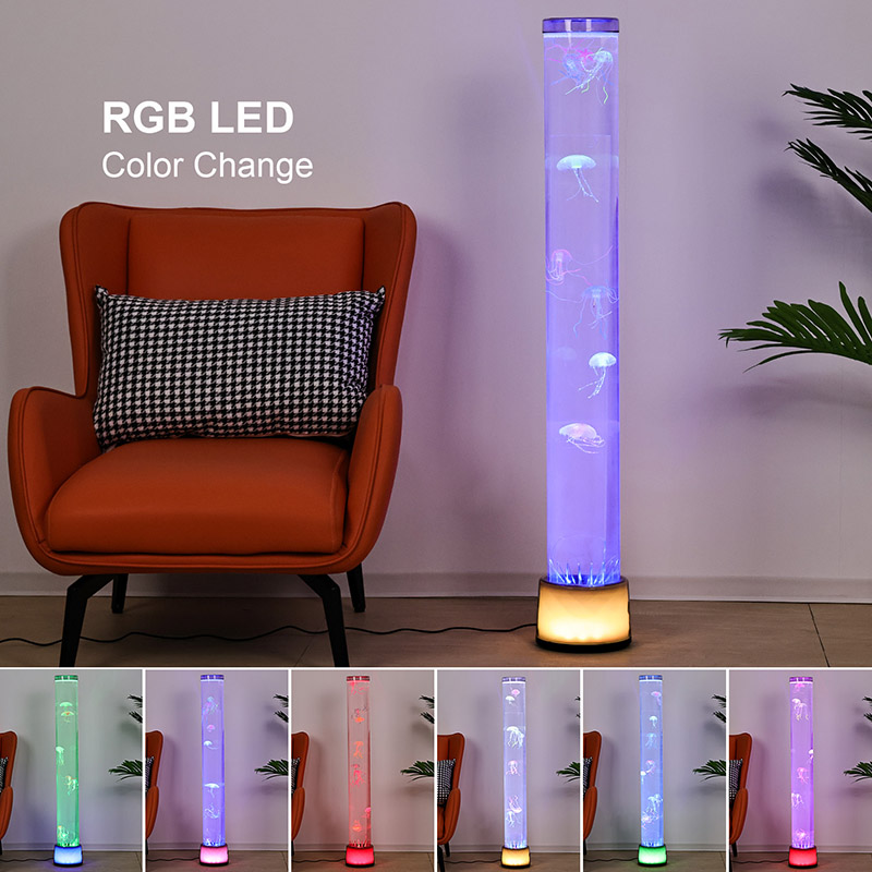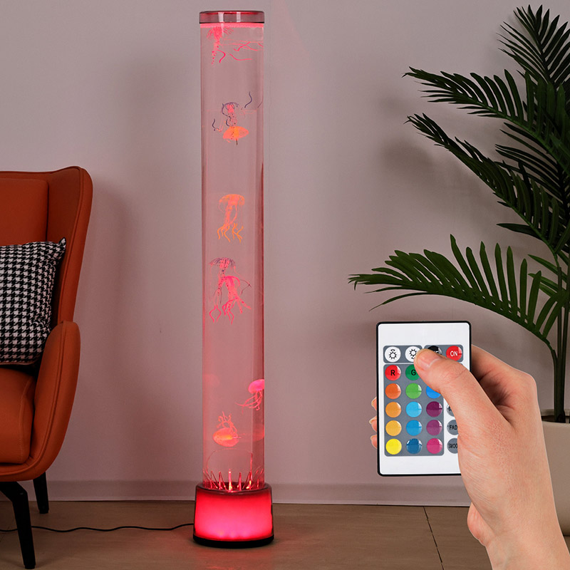 39.5*39.5*113CMLampu Jellyfish Lantai RGB minangka potongan dekorasi omah kreatif sing nyampur teknologi modern karo estetika alami. Kanthi efek cahya lan bayangan lan desain ubur-ubur sing kaya urip, nambah suasana segara sing misterius lan tenang ing ruang interior. Kabeh desain digawe saka akrilik transparan sing dhuwur, kanthi bentuk langsing lan elegan sing meh podho miniatur ing jero banyu, nyemplungake sampeyan kaya-kaya ana ing jero segara.