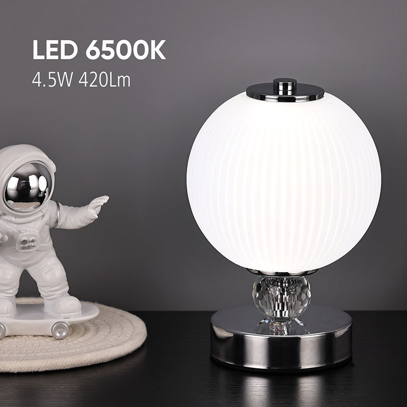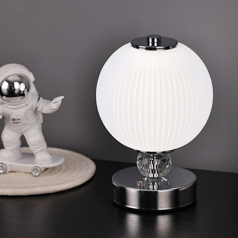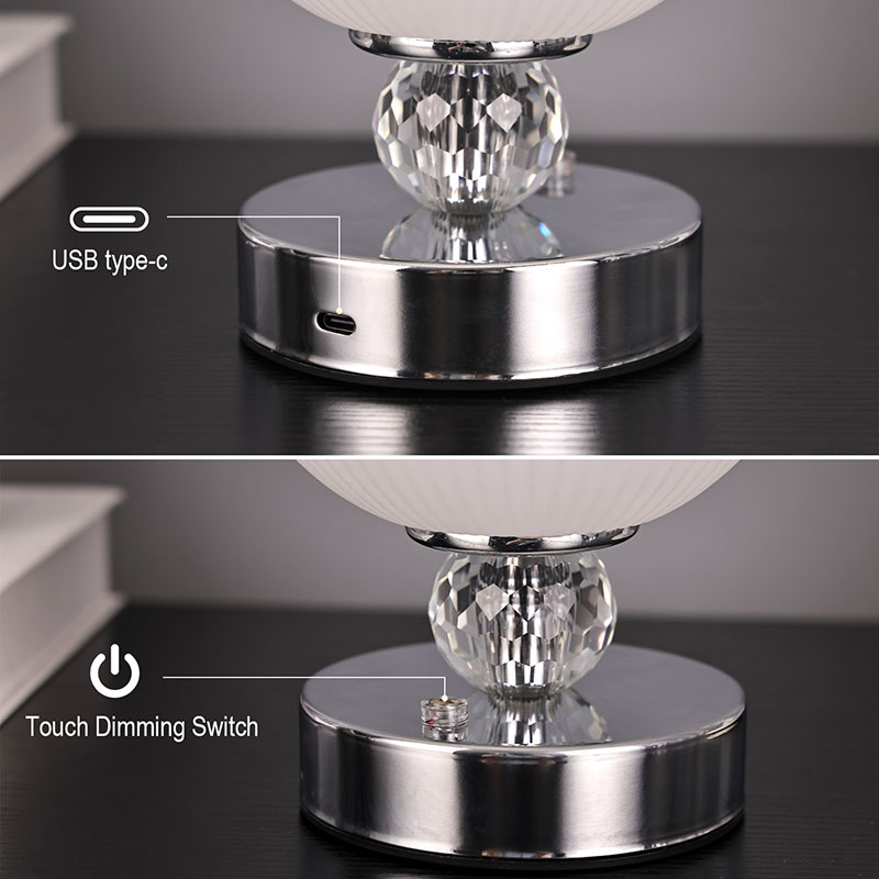 Sorotan paling gedhe saka lampu meja mini iki yaiku desain kap lampu bunder sing unik. Kap lampu digawe saka bahan kaca berkualitas tinggi, kanthi permukaan sing alus lan alus lan luster alus. Desain kap lampu bundher ora mung menehi lampu tekstur sing murni lan mulya, nanging uga ngidini cahya dipancarake luwih merata, nggawe atmosfer alus lan anget.
